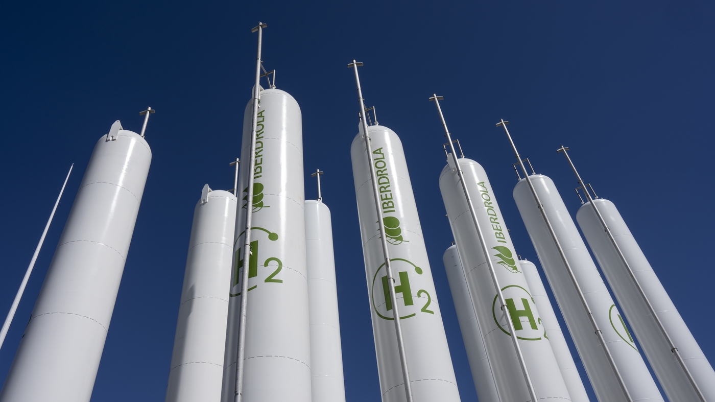 Hydrogen storage tanks are visible at the Iberdrola green hydrogen plant in Puertollano, central Spain, on March 28. The Biden administration on Friday released its highly anticipated proposal for how the U.S. plans to dole out tax credits to hydrogen producers.
