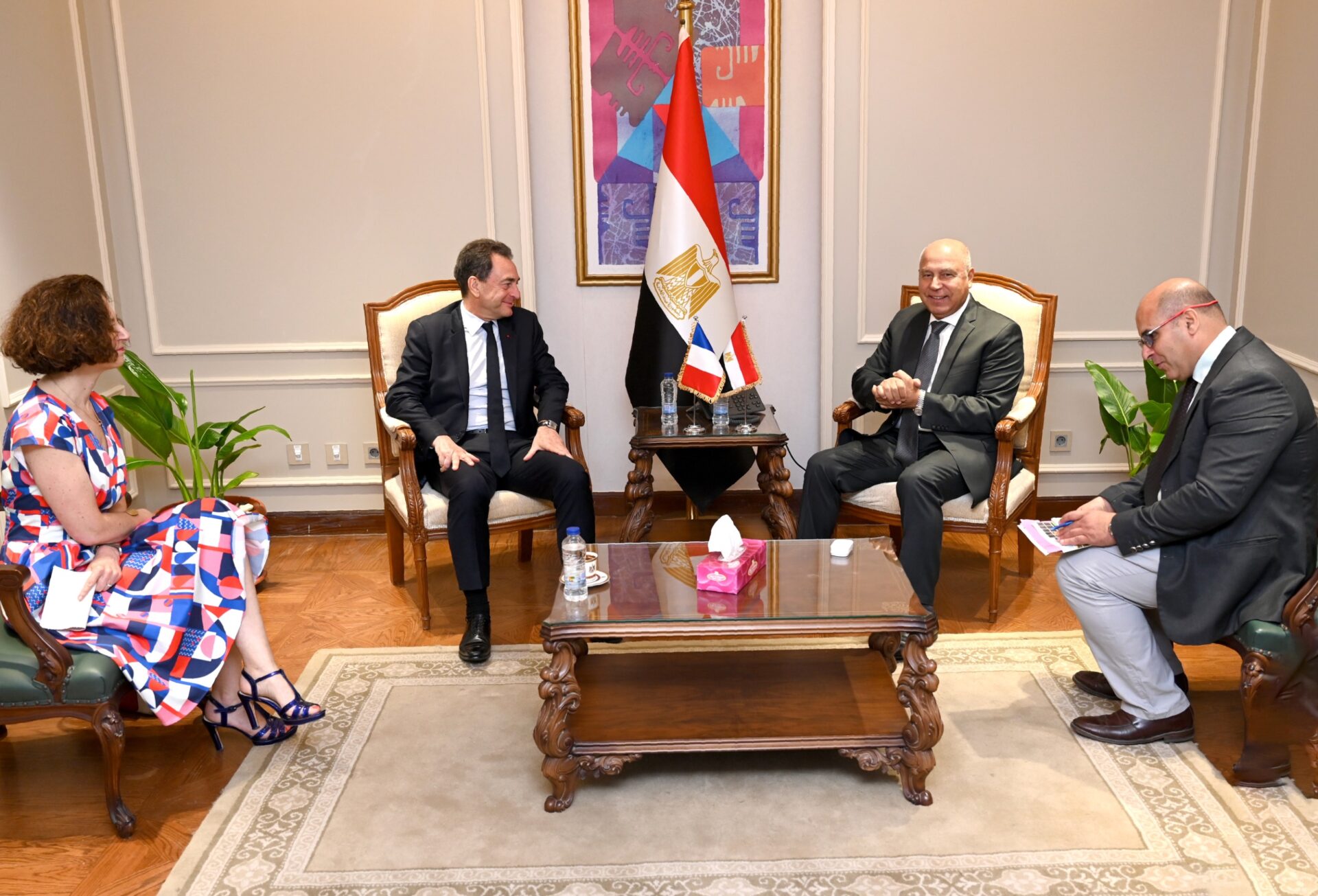 The discussions centred around ongoing joint transport projects and the latest developments outlined in the Memorandum of Understanding between the Egyptian Ministry of Transport and the French Ministry of Economy and Finance.