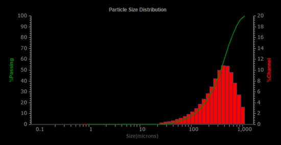 Figure 1: Particle Size Distribution, Thermally Purified Lac Knife Lot ID: GN250730005