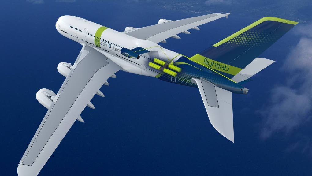 According to Airbus vice president Glenn Llewellyn, “Airbus’s ambition is to take this aircraft and add a stub in between the two rear doors at the upper level. That stub will have on the end of it, a hydrogen-powered gas turbine, and inside the aircraft, there will be hydrogen storage and hydrogen distribution, which will feed this engine with hydrogen.”