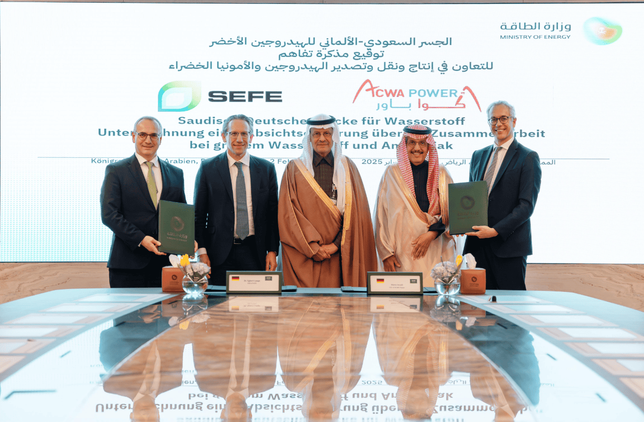 Under the MoU, ACWA Power and SEFE will work on joint projects, with an initial target of exporting 200,000 tons of green hydrogen annually from the Kingdom to Europe by 2030.