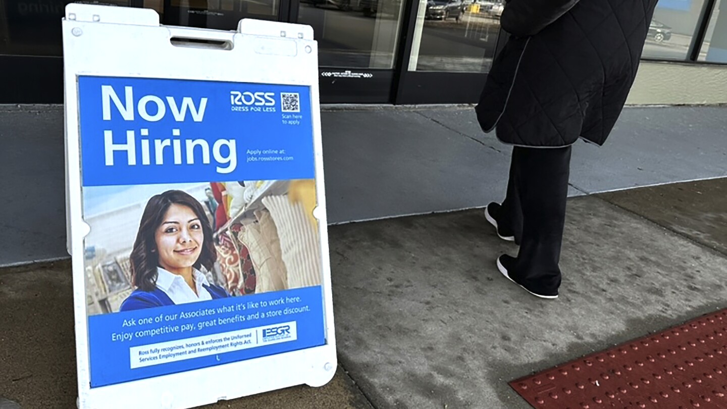 A hiring sign is displayed outside of a retail store in Schaumburg, Ill., Tuesday, Dec.12, 2023. On Thursday, the Labor Department reports on the number of people who applied for unemployment benefits last week. (AP Photo/Nam Y. Huh)